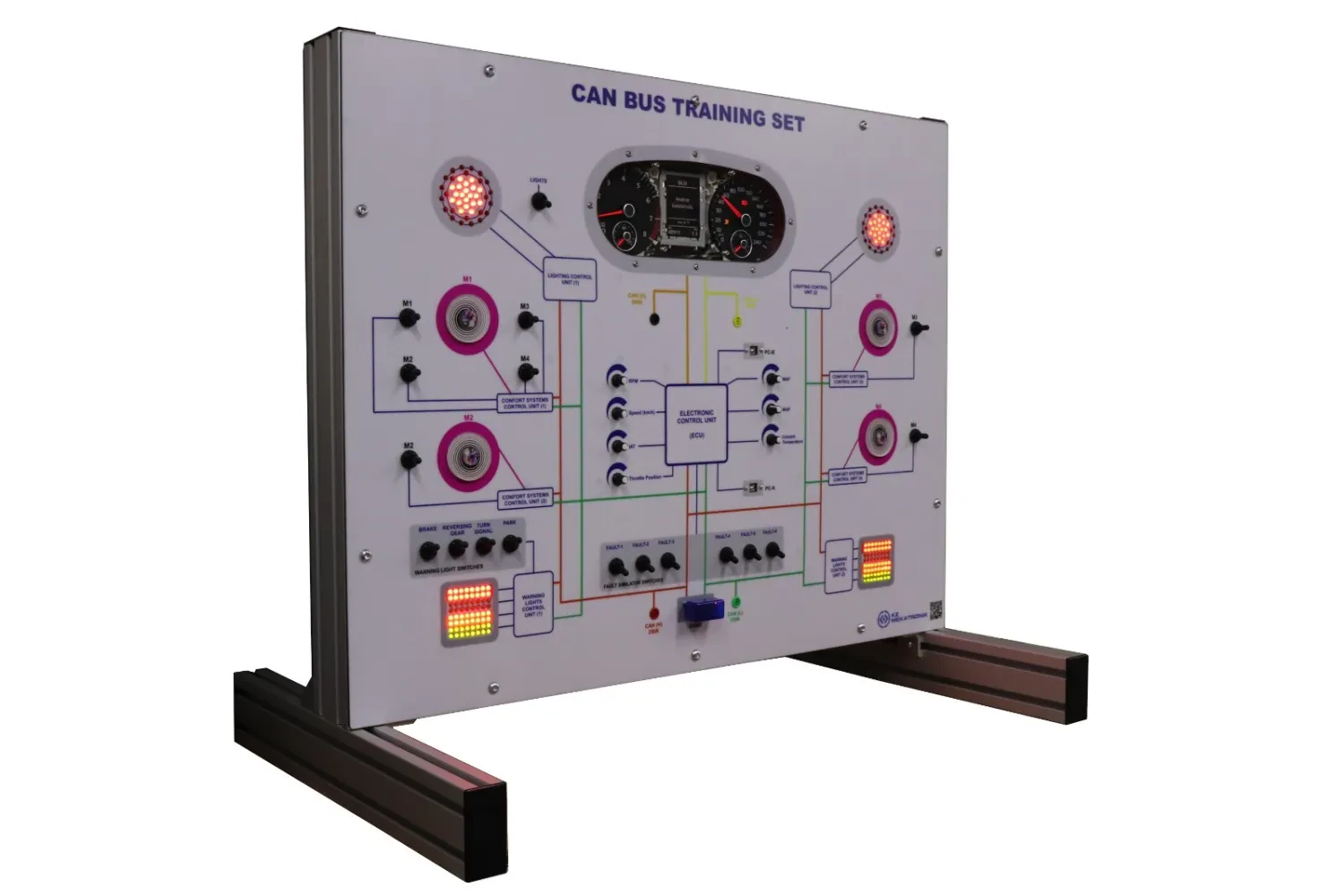 CAN BUS Sistemi Eğitim Seti, otomotiv sektöründe, haberleşme ve kontrol sisteminin uygulamalı olarak anlatılması için tasarlanmış eğitim setidir. CAN BUS Sistemi Eğitim Seti adına gerekli ekipmanlar eğitim ünitesi üzerinde mevcuttur. Eğitim seti, otomotiv sektöründe kullanılan parçalardan oluşturulmuştur. Eğitim ünitesinde yer alan eğitici ve yölendirici çizimler eğitimin verimliliğini arttırmaktadır. Modüllerin üzerindeki yazı ve sembollerin çiziminde renkli baskı teknolojisi kullanılmıştır. Sistemdeki ekipmanlar ve sistemin işleyişi her açıdan gözlemlenebilmektedir. Sistemin konumlandırıldığı platform, kolay hareket ettirilebilen ve kilitlenebilir tekerlekler üzerindedir. Panelin tamamı dayanıklı materyallerden oluşmaktadır.