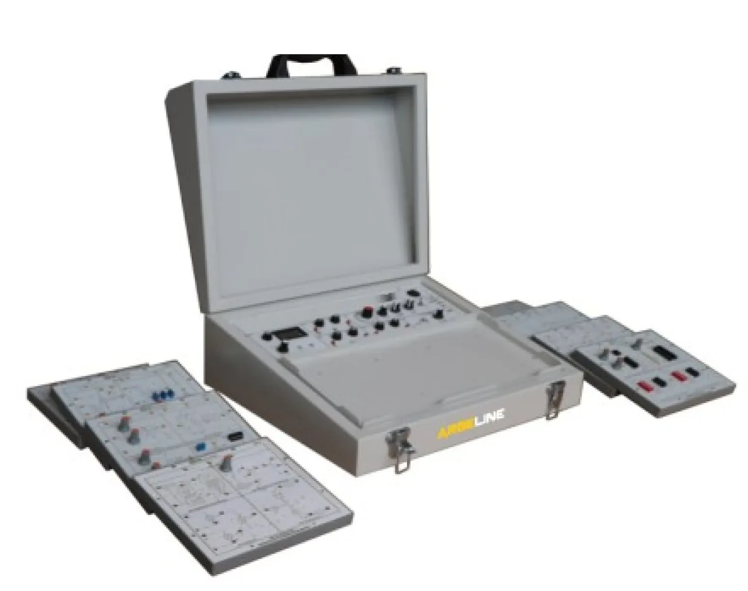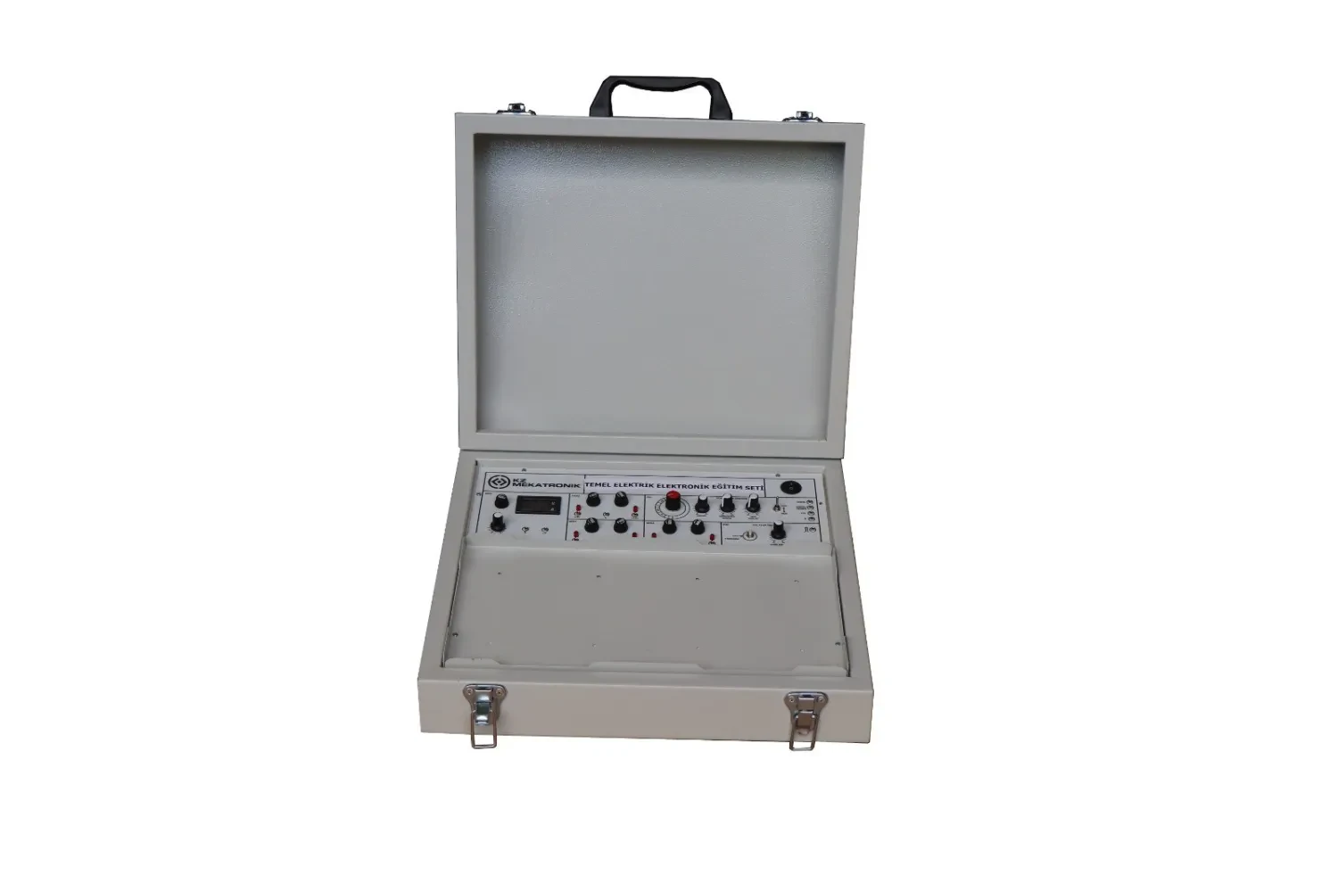 Temel Elektrik Elektronik Eğitim Seti ana ünitesi, analog uygulamalar, dijital uygulamalar ve temel devre analizi uygulamalarının yapılabileceği şekilde çantalı ve masaüstü kullanıma uygun yapıda tasarlanmıştır. Eğitim setinin içeriği, temel eğitim dahil ileri seviye teknik eğitim için uygundur. Eğitim seti modüler yapıdadır. Modül kutuları metal saçtan imal edilmiş ve elektrostatik toz boya ile kaplanmıştır. Eğitim Seti; Temel Elektrik Elektronik Eğitim Seti ana ünitesi, analog uygulamalar ve temel devre analizi uygulamalarının yapılabileceği şekilde tasarlanmıştır. Set üzerinde; ayarlı ve sabit güç kaynakları, fonksiyon jeneratörü, darbe üreteçleri, sabit osilatör ve analog devre uygulamaları için gerekli giriş-çıkış elemanları bulunmaktadır. Deney seti AC ve DC modüllerini içermektedir.
