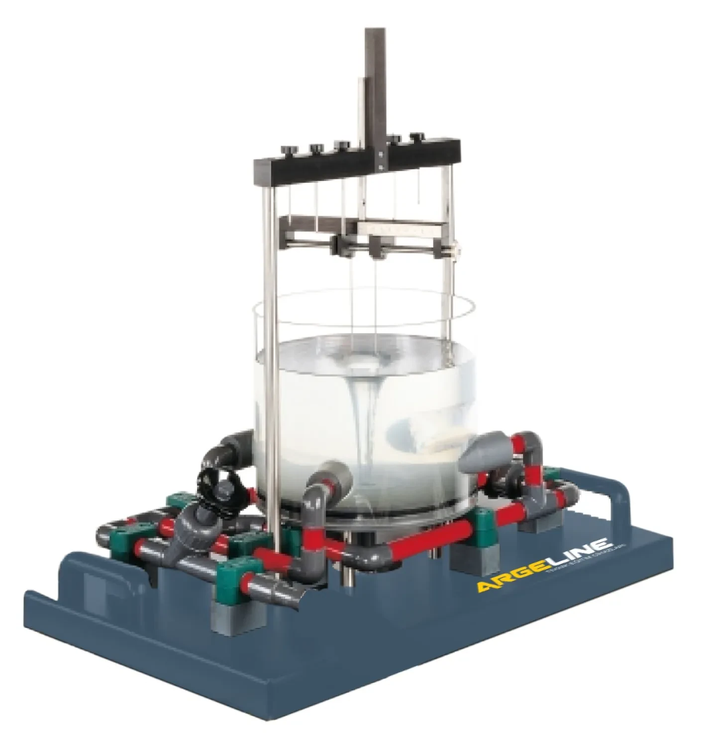 Modüler Vorteks akışkan dinamiğinde bir girdap, yeterince büyük hız gradyanlarının neden olduğu bir akışkanın dairesel bir akışıdır. Uygulamada, su bir havuzdan bir boruya aktığında veya farklı hızlarda iki akışkan birbiriyle karşılaştığında bu gözlemlenebilir.Deney ünitesinde nozullu şeffaf bir tank, su tahliyesinde çeşitli ekler, bir pervane ve vorteks profllerini tespit etmek için bir nokta göstergesi vardır.Serbest vorteksi oluşturmak için su, radyal olarak tanka verilir ve yavaşlamak için bir halkadan akar. Girdap, tanktan çıkan akışla yaratılır. Tahliye için çeşitli çaplarda kolayca değiştirilebilen dört adet ek parça mevcuttur.Zorlanmış bir girdap oluşturmak için su teğetsel olarak verilir. Girdap, bir su jeti tarafından tahrik edilen bir pervane aracılığıyla oluşturulur.Nokta göstergeleri, girdapların yüzey profllerini ölçmek için kullanılır. Vorteksin hızı da belirlenir.